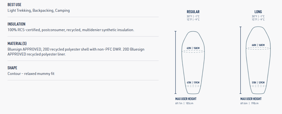APPROVED recycled polyester liner. - Contour – relaxed mummy fit