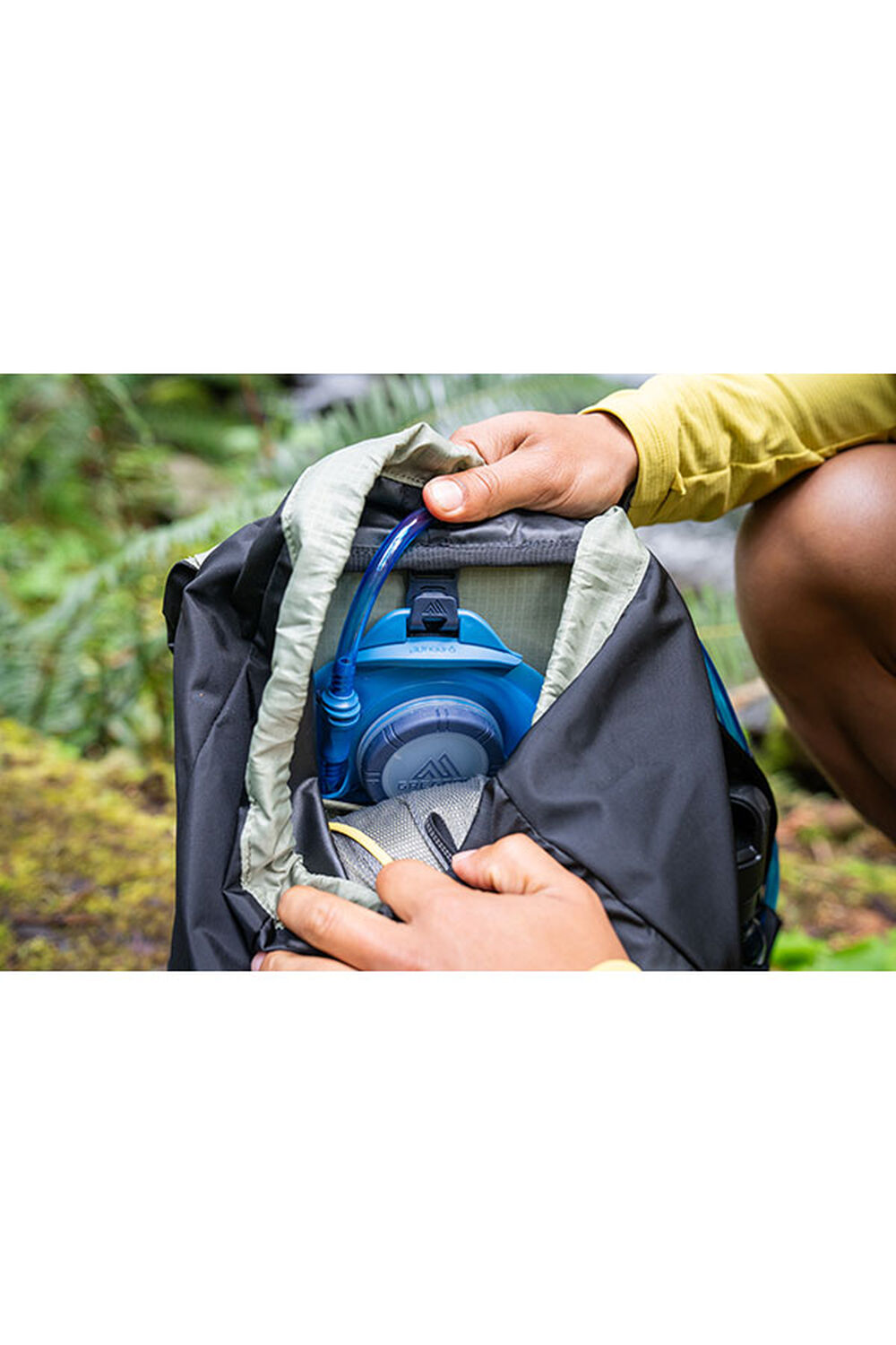Отделение за хидратираща система: вътрешно отделение със SpeedClip за закачане, съвместимо с резервоарите Hydro на Gregory (резервоарът не е включен).